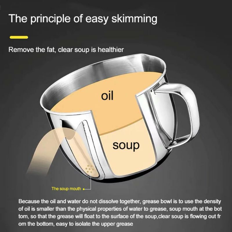 Ca Gạn Dầu Mỡ Tách Dầu INOX 304, Bình lọc dầu mỡ, âu tô gạn mỡ, loại bỏ chất béo trong soup, nước dùng, nước canh lẩu..