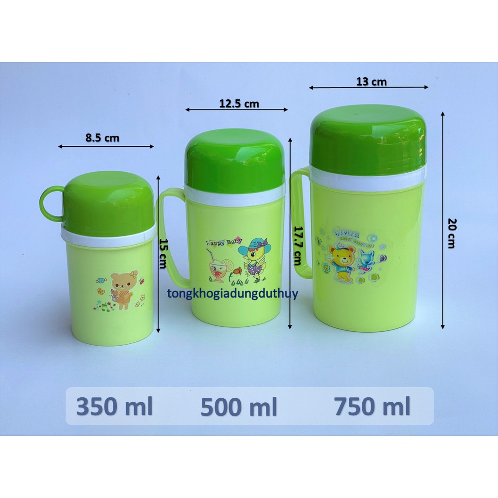 Ca giữ nhiệt bằng nhựa có nắp làm tách uống nước Nguyên Ba, 350ml - 500ml - 750ml - 1000ml, nhựa pp chính phẩm an toàn