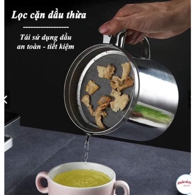 Ca lọc cặn dầu mỡ thừa inox 304, làm sạch dầu mỡ tái sử dụng,thể tích 1,2 lít