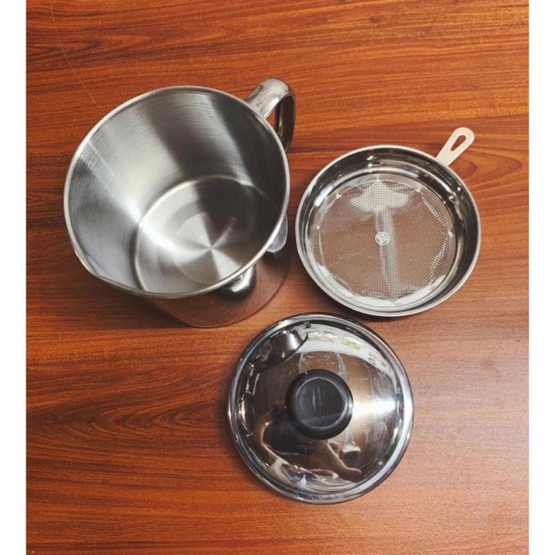 Ca lọc dầu ăn 1.2 lít - bình inox lọc cặn dầu ăn có tay cấm