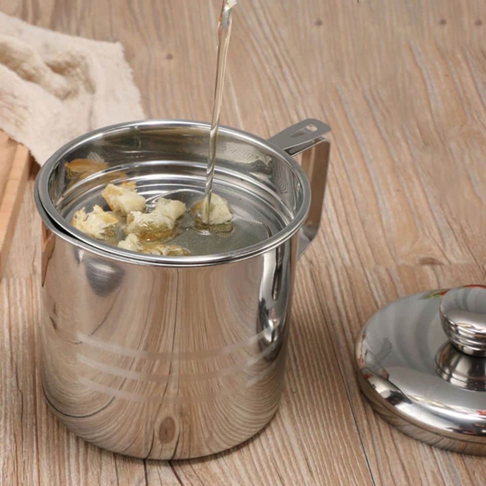 Giới thiệu Ca Lọc Dầu Ăn Có Lưới Lọc Cặn Bằng INOX -Bình Đựng Dầu Chiên Lọc Cặn Dung Tích 1,2L-Ca Lọc Cặn Dầu Ăn Nhà Bếp