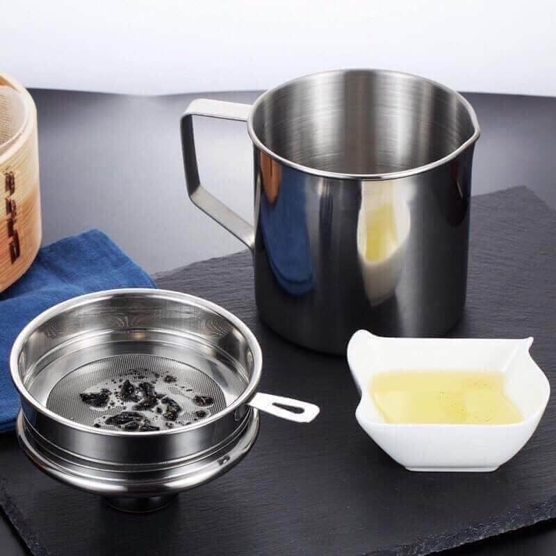 Giới thiệu Ca lọc dầu inox 304 1,2L có nắp đậy