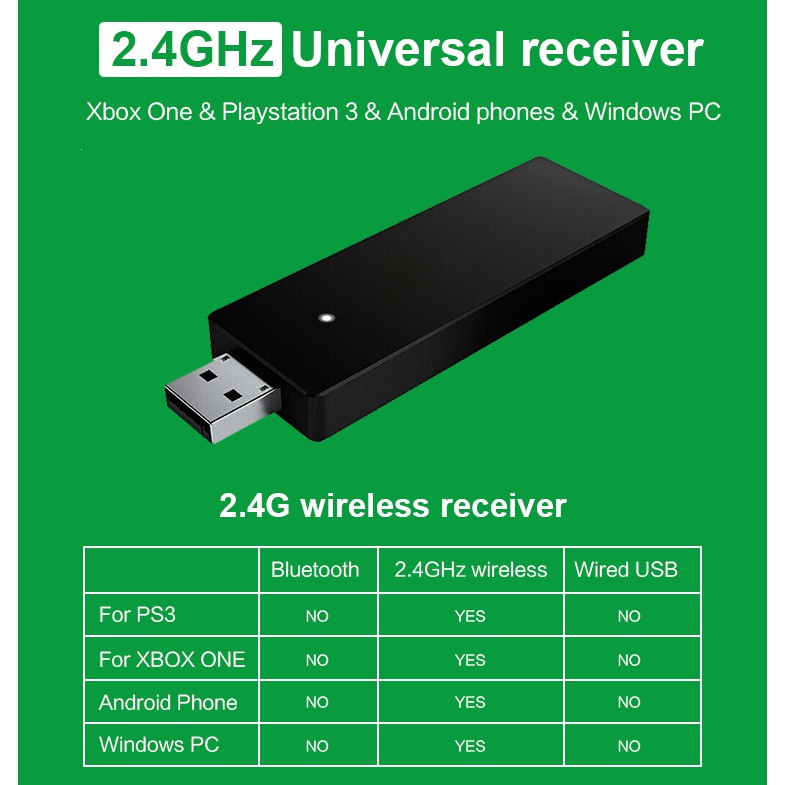 2. 2.4G Wireless2.4G gamepad không dây, không có Bluetooth.Tương thích với các dòng Android Smart Phone, điều khiển các dòng máy game PS3, Xbox và cho Windows PC 7/8/10.