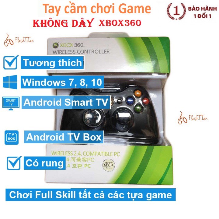 Tay Cầm Chơi Game không dây Xbox 360 Có Rung kết nối thông qua bộ bluetooth usb 2.4Ghz, có thể kết nối đang dạng thiết bị như PC, laptop, Smart Tivi, TV Box.