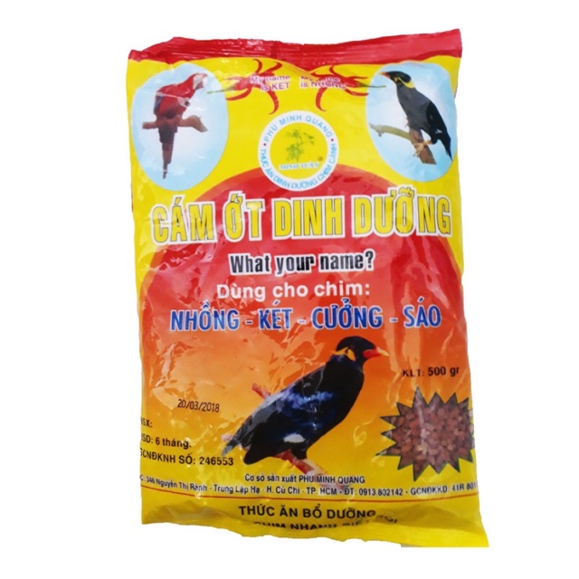 Giới thiệu Cám Ớt Minh Tuân 500g - Thức Ăn Chim Nhồng, Két, Cưỡng, Sáo