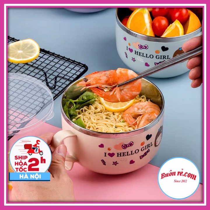 Ca mỳ lõi inox cách nhiệt có nắp đậy KÈM THÌA tiện lợi – Ca mỳ có quai đựng đồ ăn nhanh – 01486