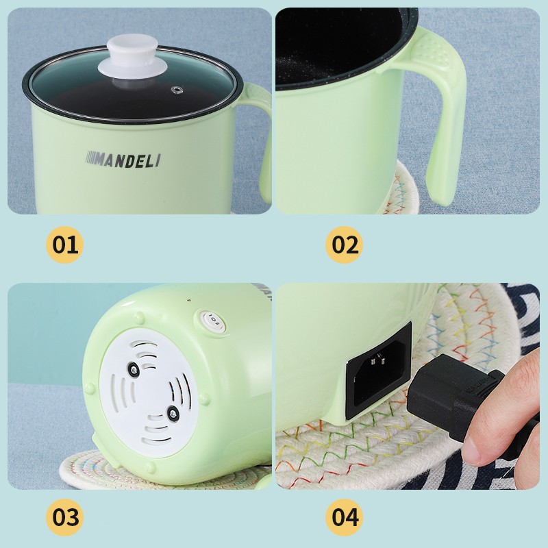 Thiết Bị Điện Gia Dụng > Đồ gia dụng nhà bếp > Nồi nấu đa năng || Ca mỳ nổi lẩu điện1.8L MANDELI 2 NẤC NHIỆT kèm giá hấp INOX dùng để chiên xào hấp rán siêu nhanhCòn hàng