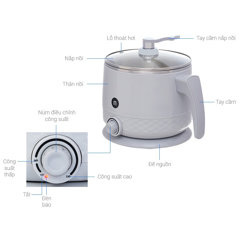 Bên ngoài thân nhựa cao cấp, an toàn. Bên trong lồng inox chất lượng cao, thu nhiệt nhanh cho thức ăn nhanh chính, giữ nhiệt lâu cho thức ăn luôn nóng. Đa chức năng: nấu mỳ, nấu lẩu, luộc trứng, đun nước. Ca nấu siêu tốc đa năng MK-214 rất thích hợp cho 1- 2 người ăn hoặc mang theo khi đi du lịch. Tiện dụng hơn nữa khi bạn nấu đồ ăn nhanh ở cơ quan.