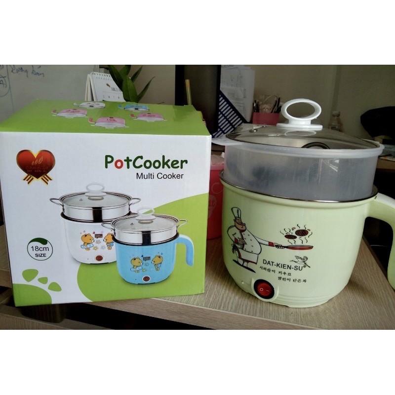 Ca nấu mì đa năng mini siêu tốc Có kèm Xửng Hấp Nhiều Màu kiêm nồi lẩu tiện lợi an toàn đường kính nồi 16cm 1.5 lít