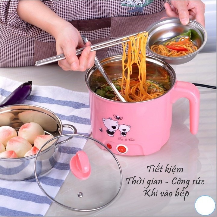 Ca nấu Mì Đa Năng Siêu Tốc, Nồi Lẩu Điện Mini 18cm Kèm Giá Hấp Trứng Thông Minh