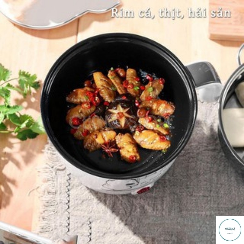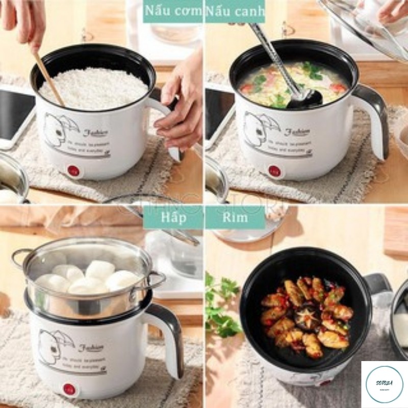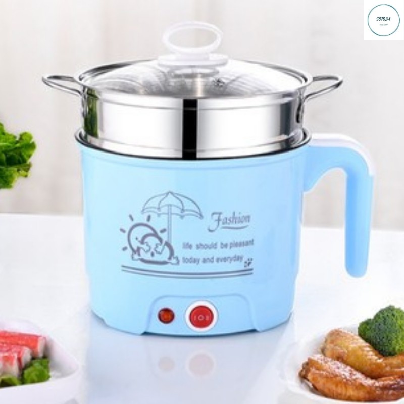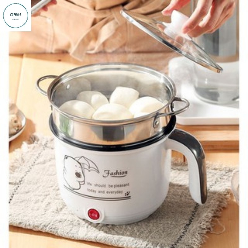 Ca Nấu Mì, Lẩu Điện,Mini KNồièm Giá Hấp Inox+ 1 Khay Luộc Trứng Siêu Tiện Dụng,Có Tay Cầm 1,8L, 2 Nấc Nhiệt Mẫu Mới 2021