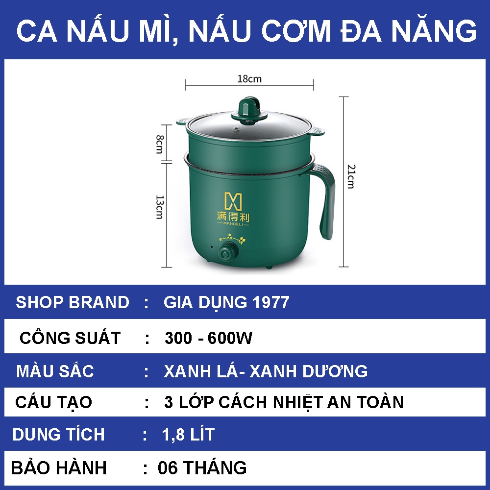 Gia Dụng 1977 cam kết với khách hàng về sản phẩm Ca nấu mì mini đa năng 2 tầng dung tích 1.8L, Nồi nấu mì có tay cầm với 2 nấc nhiệt tiện lợi: