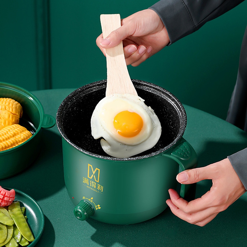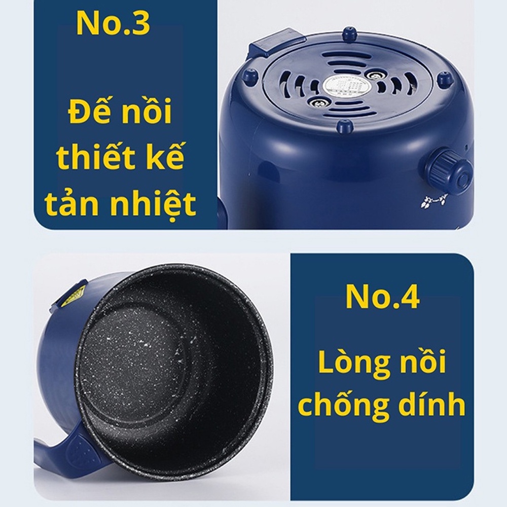 Ca nấu mì mini đa năng 2 tầng dung tích 1.8L, Nồi nấu mì với 2 nấc nhiệt tiện lợi, nồi lẩu điện chống dính kèm giá hấp
