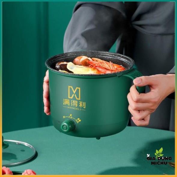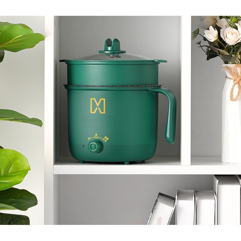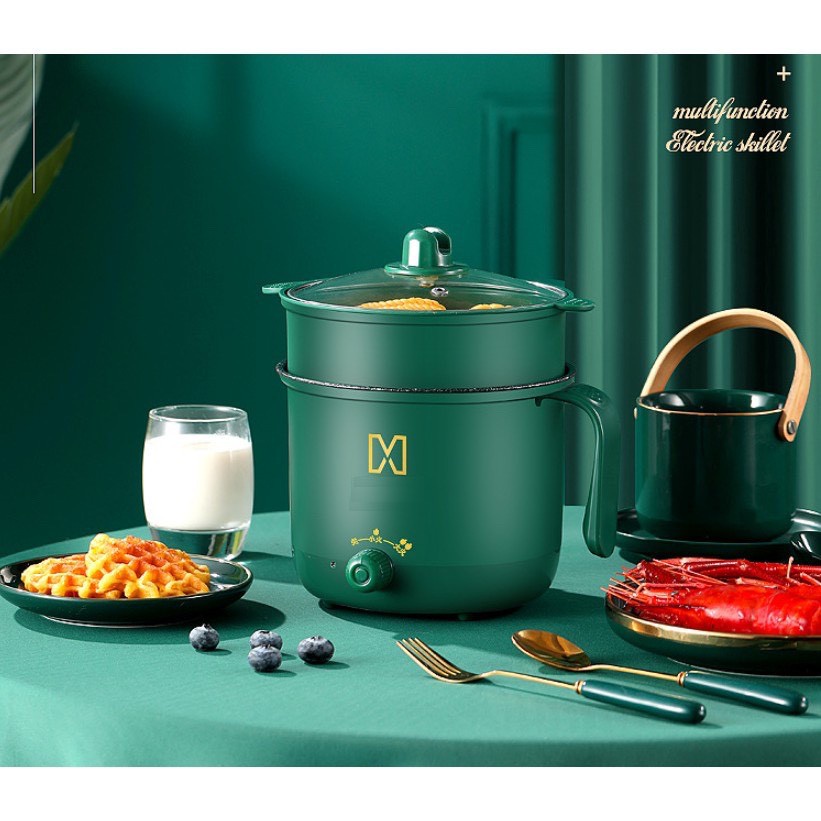 Ca Nấu Mì, Nấu Cơm Đa Năng Có Tay Cầm 1,8L - Nồi Lẩu Điện Mini Kèm Giá Hấp Màu Xanh