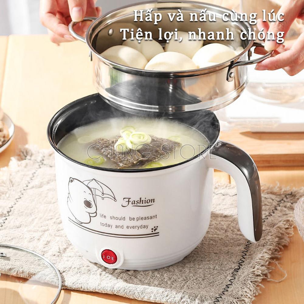 Ca Nấu Mì, Nấu Cơm Đa Năng Tiện Dụng Có Tay Cầm 1,8L - Nồi Lẩu Điện Mini Kèm Giá Hấp