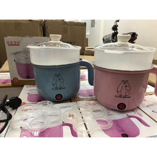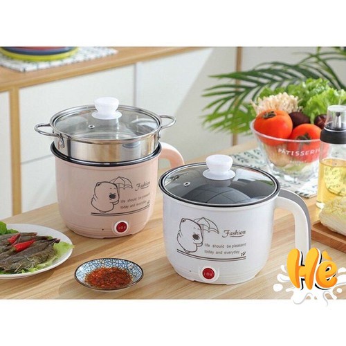 Ca Nấu Mì, Nấu Cơm Đa Năng Có Tay Cầm 1,8L - Nồi Lẩu Điện Mini Kèm Giá Hấp nhựa