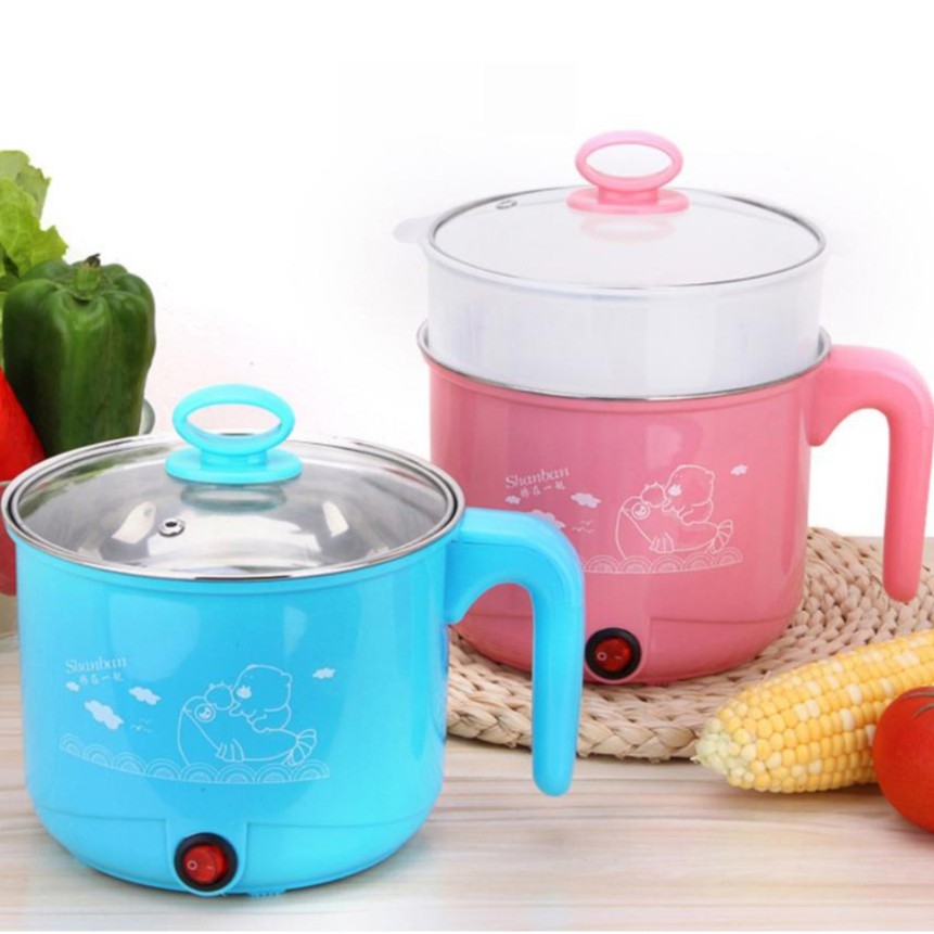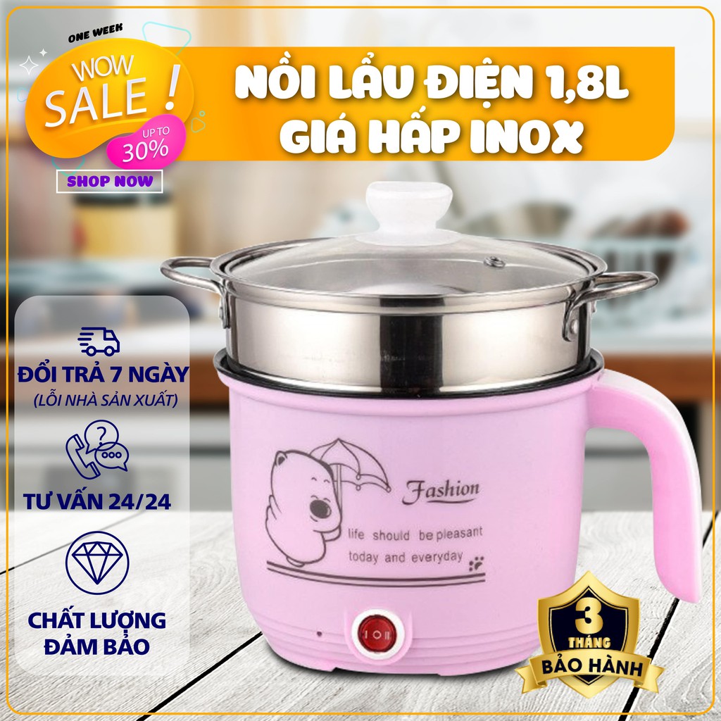 Ca Nấu Mì, Nấu Cơm Đa Năng Có Tay Cầm 1,8L [HÀNG HIỆU] Nồi Lẩu Điện Mini Kèm Giá Hấp INOX