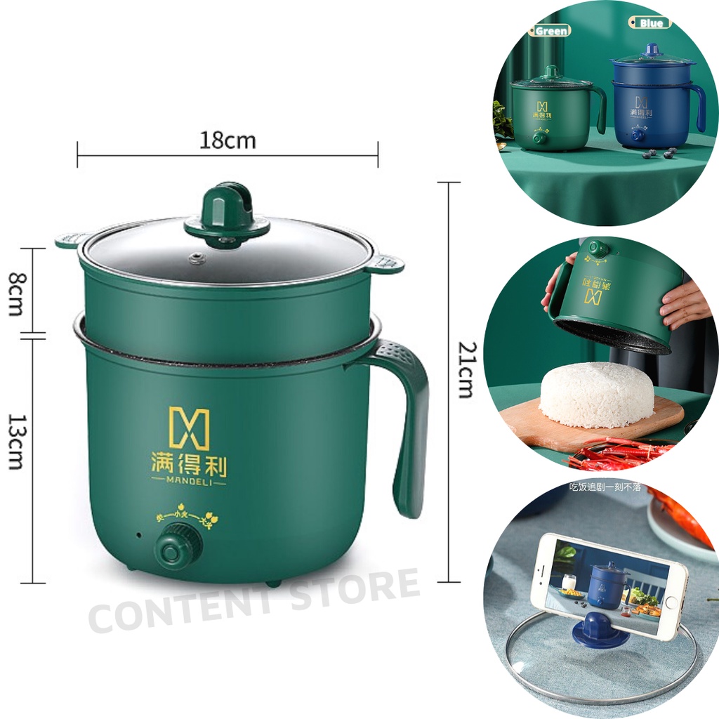 Giới thiệu Ca Nấu Mì, Nấu Cơm Đa Năng Có Tay Cầm 1,8L - Nồi Lẩu Điện Mini Kèm Giá Hấp Nhựa, Ca Mỳ Đa Năng