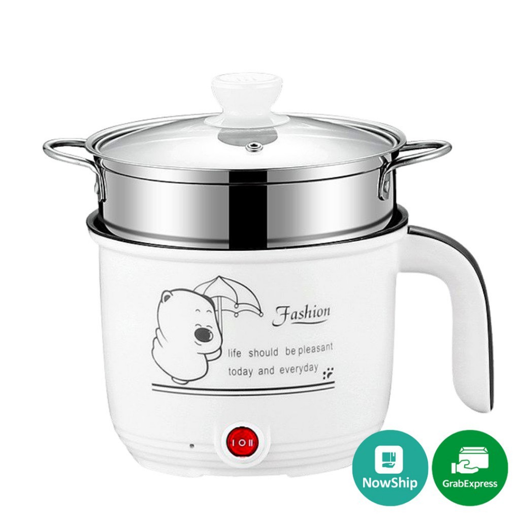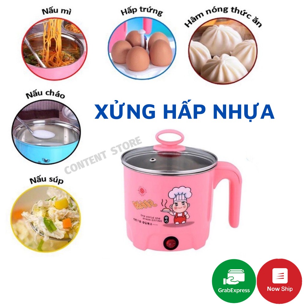 Ca Nấu Mì, Nấu Cơm Đa Năng Có Tay Cầm 1,8L - Nồi Lẩu Điện Mini Kèm Giá Hấp Nhựa, Ca Mỳ Đa Năng