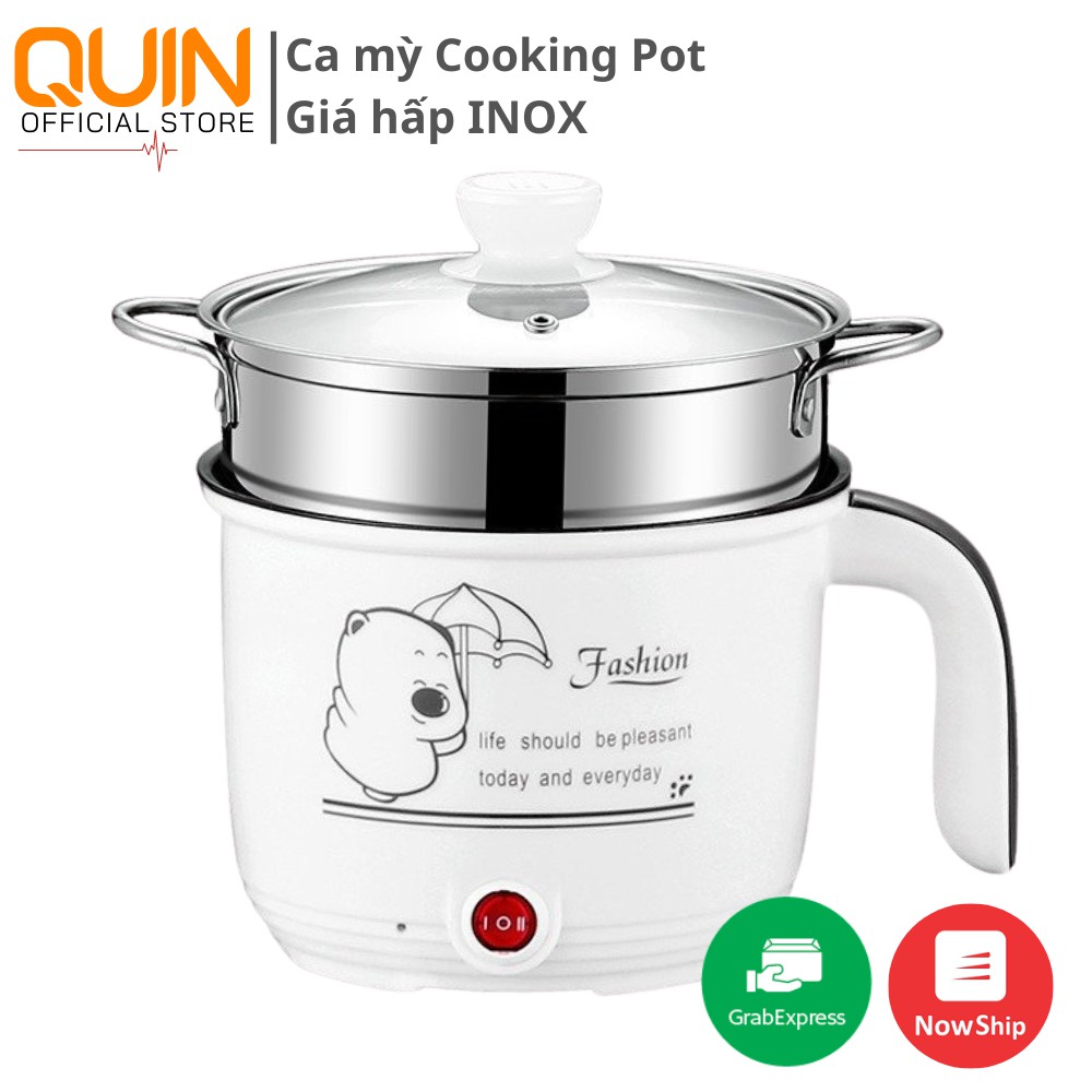 Ca Nấu Mì, Nấu Cơm Mini Siêu Tốc 18cm Kèm Giá Hấp Cooking Pot Có Tay Cầm Tiện Lợi