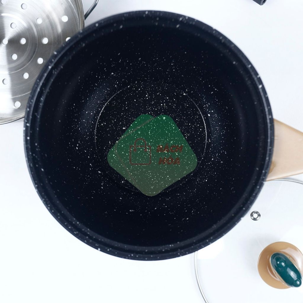 * Đáy nồi bền bỉ: Được thiết kế bằng chất liệu cao cấp nên hấp thụ nhiệt rất nhanh