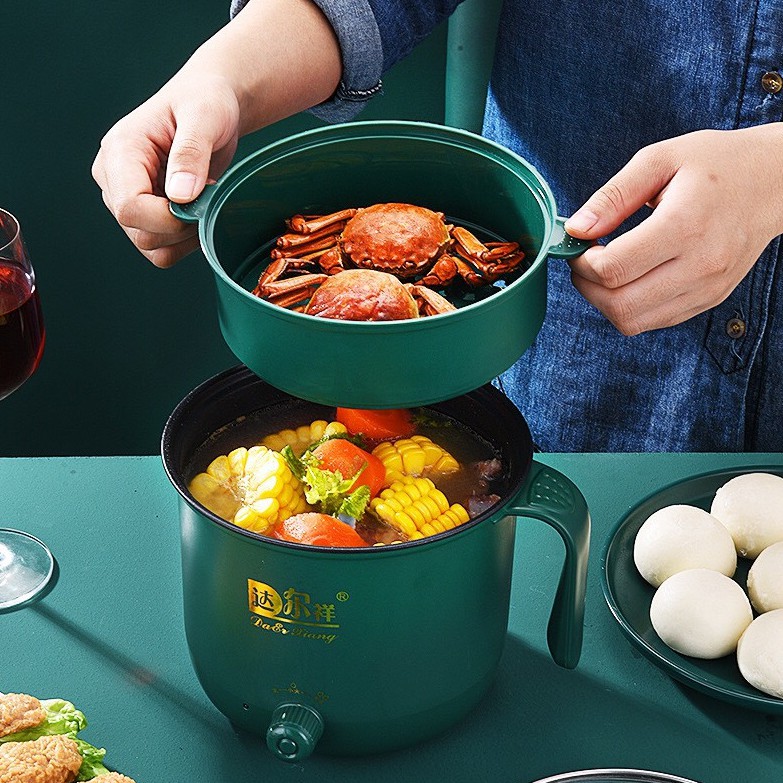 Ca Nấu Mì Nồi Lẩu Mini Cầm Tay Đa Năng Có Tay Cầm 1,8L - Nồi Lẩu Điện 2 Nấc Nhiệt Mẫu Mới 2021 Kèm Giá Hấp