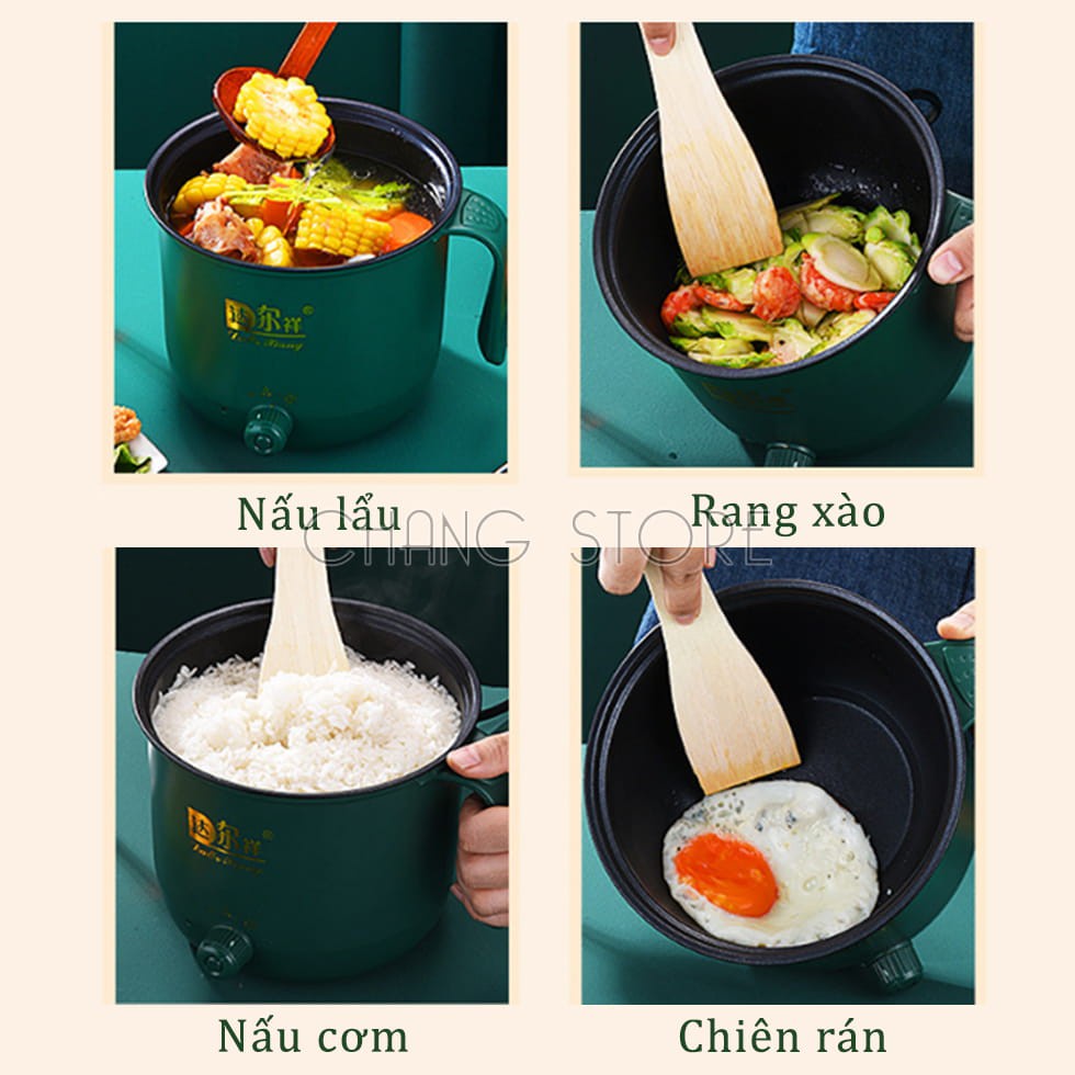 Ca Nấu Mì, Nồi Lẩu Mini Cầm Tay, Nấu Cơm Đa Năng Có Tay Cầm 1,8L - 2 Nấc Nhiệt Kèm Giá Hấp