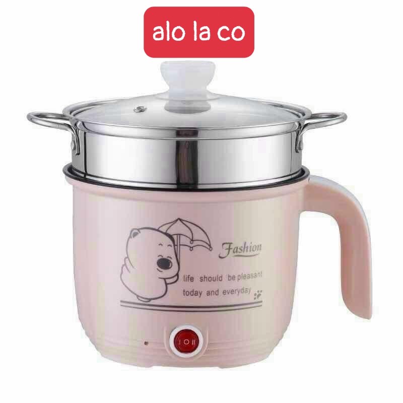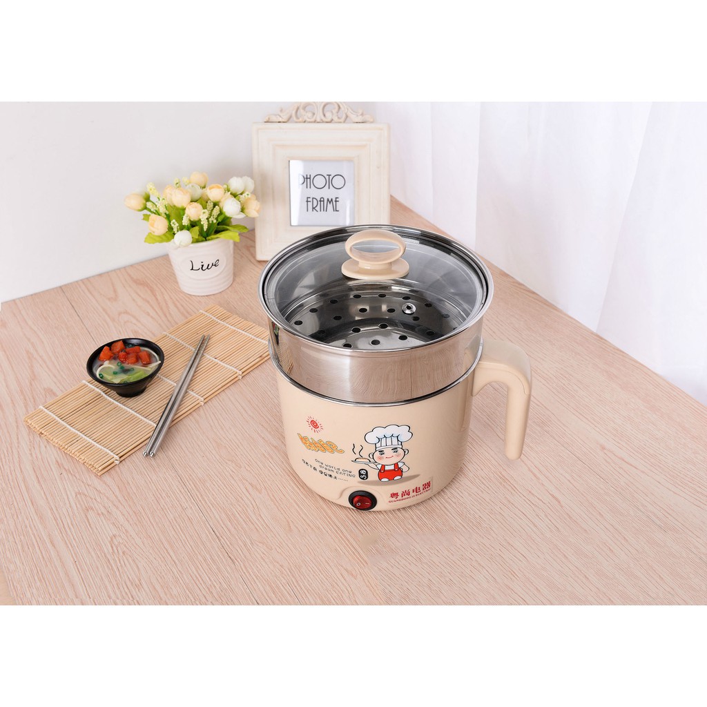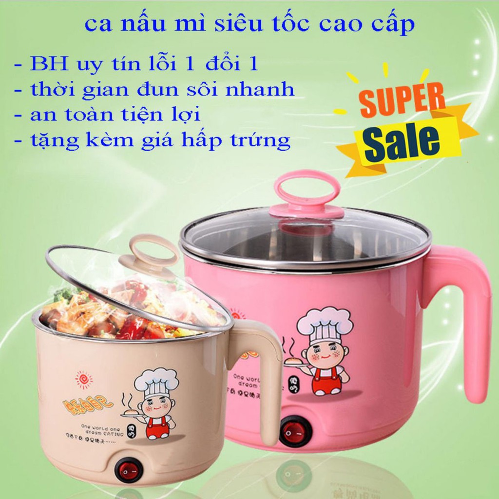 💥Ca Nấu Mì, Nấu Cơm Đa Năng Có Tay Cầm 1,8L💥Nồi Lẩu Điện Mini🖤Kèm Giá Hấp Inox🖤--------------------------------------------