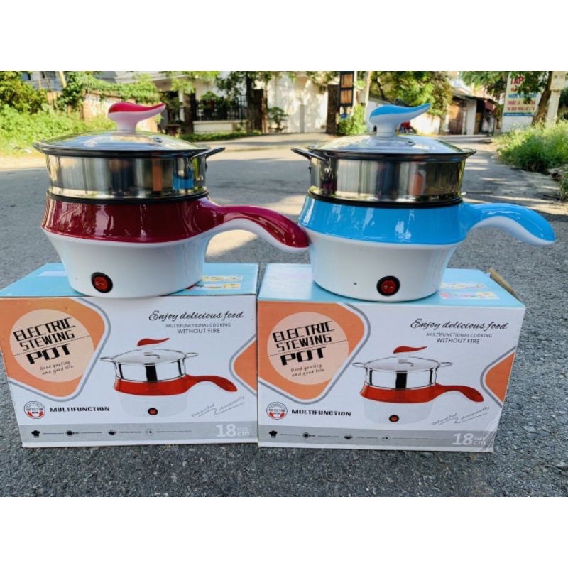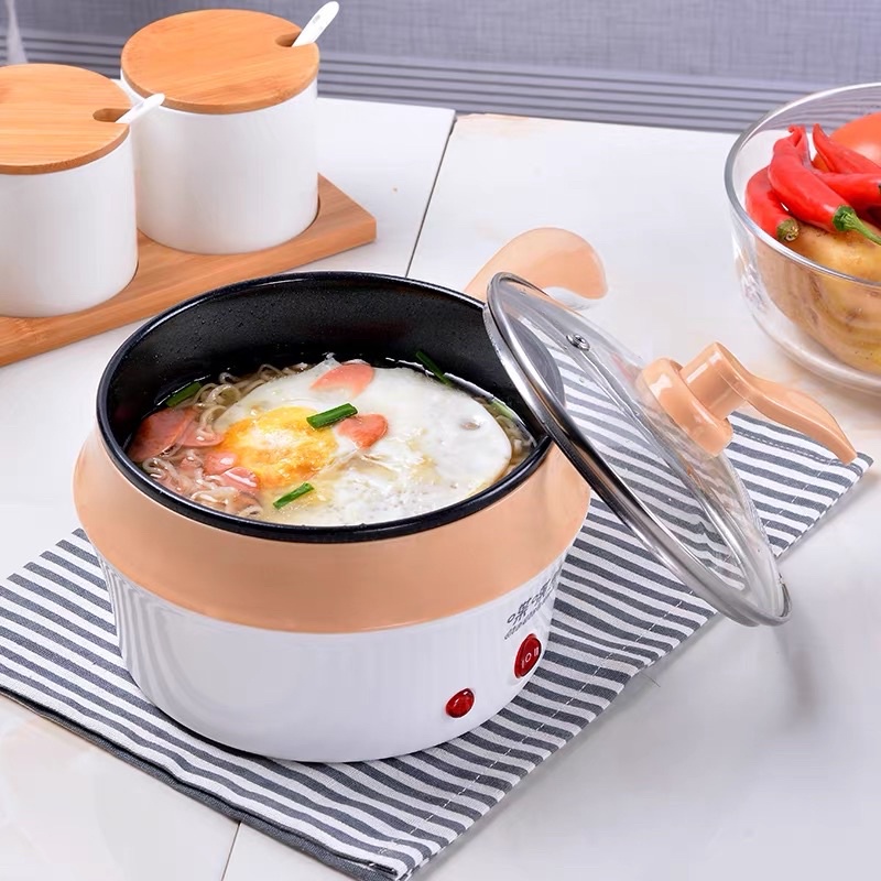 Ca Nấu Mì Siêu Tốc , Nồi Lẩu Điện Đa Năng Có Lồng Hấp Inox Cam Homeware