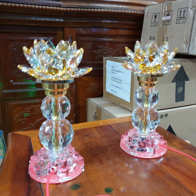 Giới thiệu Cặp đèn thờ đá pha lê 202 cao cấp tự động đổi màu cao 23 cm