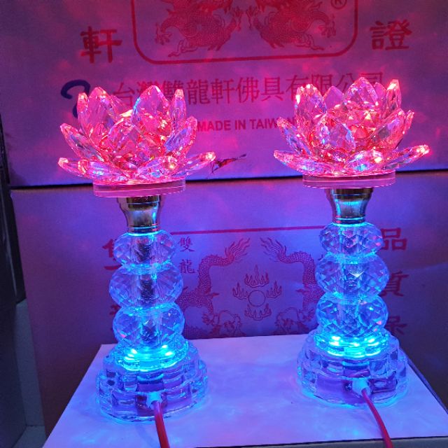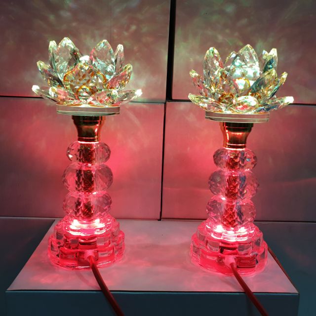 Giới thiệu Cặp đèn thờ đá pha lê cao cấp tự động đổi 7 màu cao 22 cm