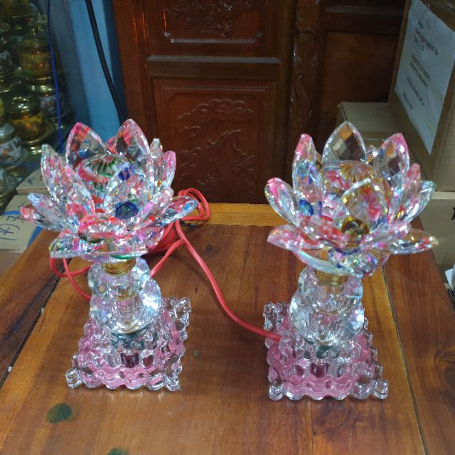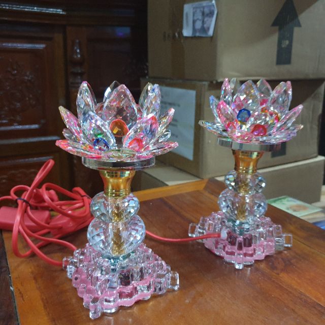 Giới thiệu Cặp đèn thờ đá pha lê cao cấp tự động đổi 7màu cao 17 cm