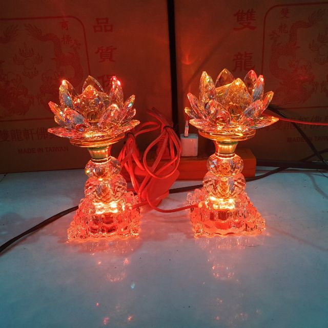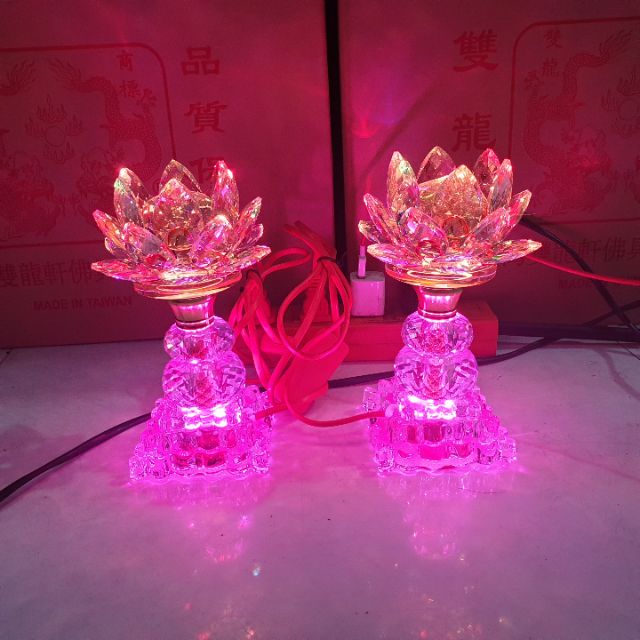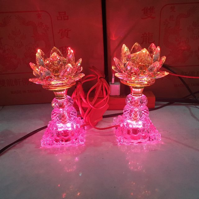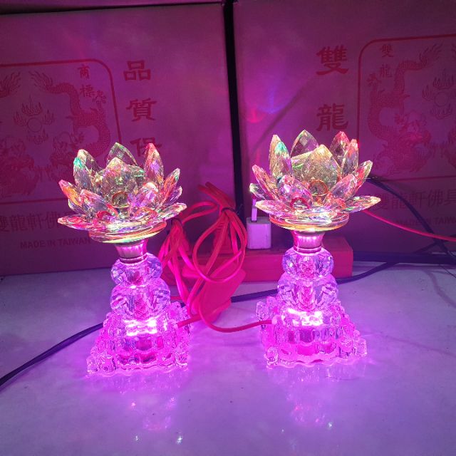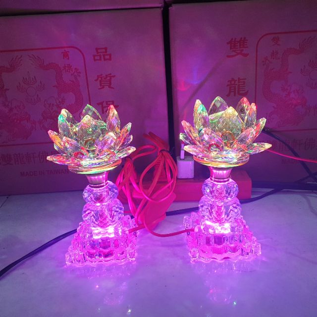 Cặp đèn thờ đá pha lê cao tự động đổi 7màu cao 17 cm mẫu mới rất đẹp
