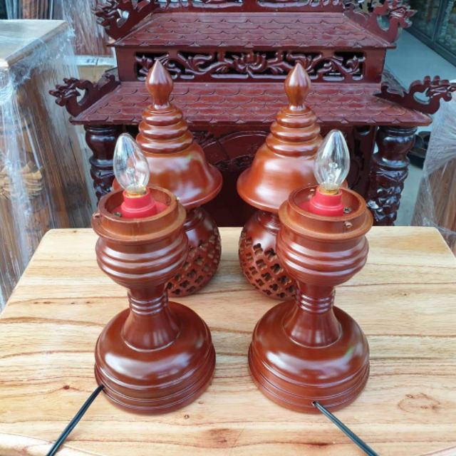 Nhà cửa & Đời sống > Dụng cụ & Thiết bị tiện ích > Dụng cụ > Khác || Cặp đèn thờ gỗ xà cừ cao 36 cm loại 1Còn hàng