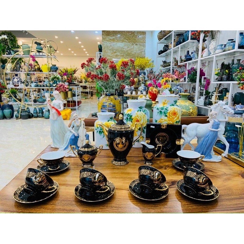 Nhà cửa & Đời sống > Dụng cụ nhà bếp > Dụng cụ pha trà, cà phê || Bộ cà phê sứ xương Versace đen cao cấpCòn hàng