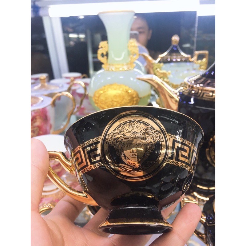 Bộ cà phê sứ xương Versace đen cao cấp