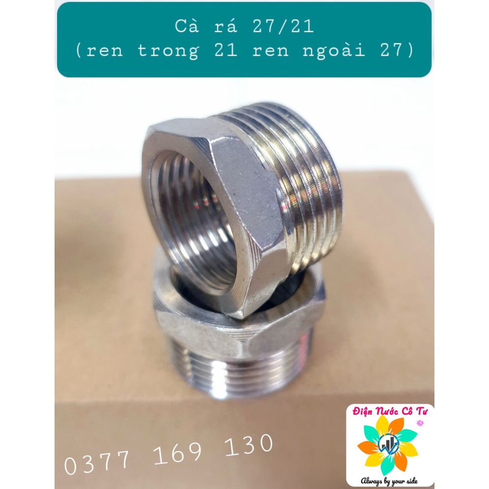 Cà rá thau 21,27 hay còn gọi là nối ren trong 21 ren ngoài 27,dùng để chuyển ren lớn thành ren nhỏ để lắp cho phù hợp với thiết bị van,vòi nước...