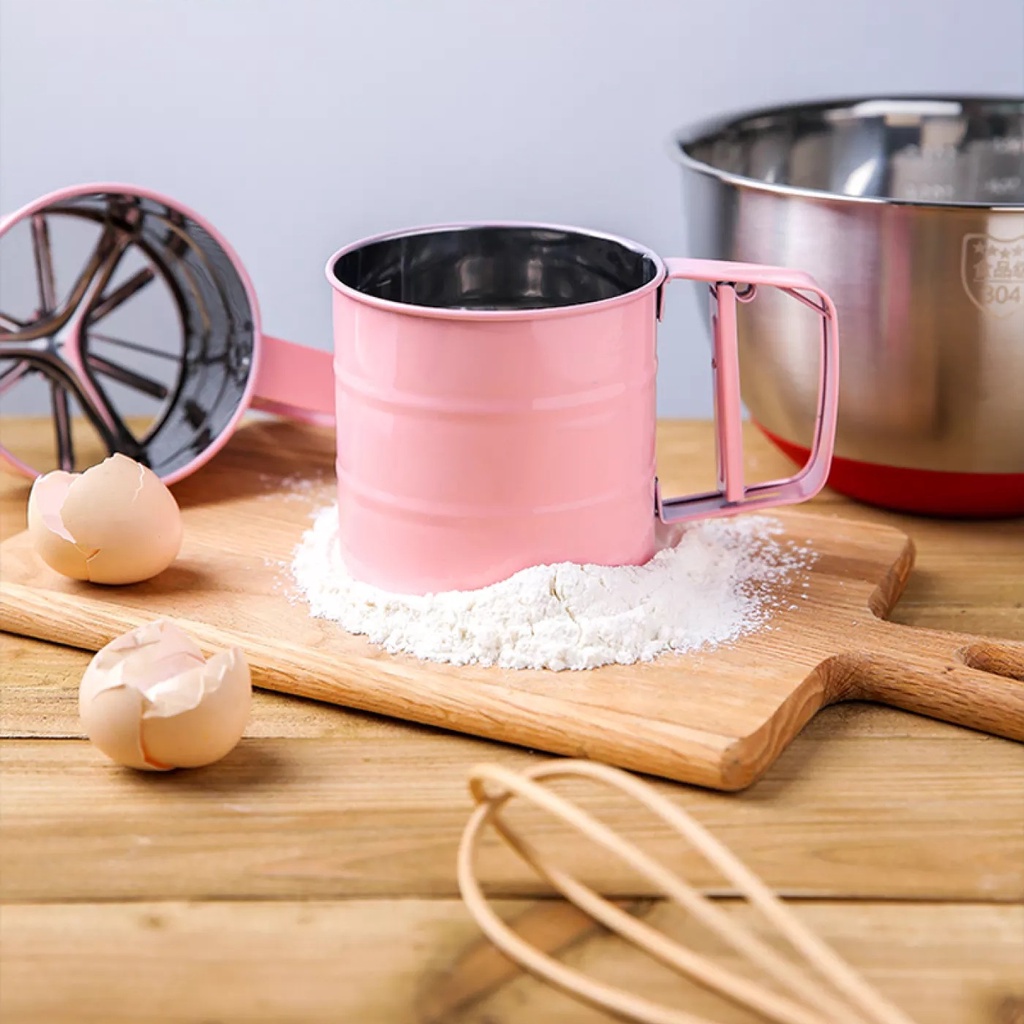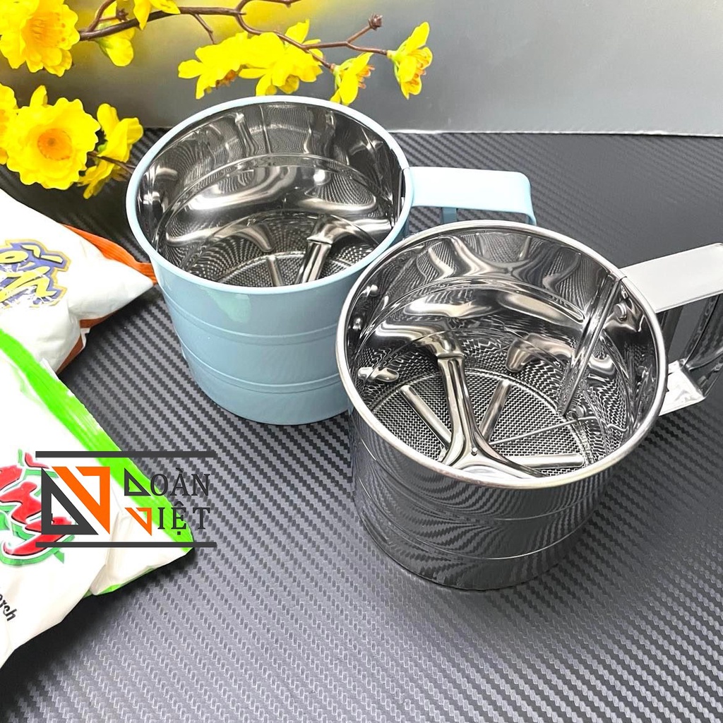 Nhà cửa & Đời sống > Dụng cụ nhà bếp > Dụng cụ lọc || Ca RÂY BỘT, Máy RẮC CA CAO INOX bán TỰ ĐỘNG, LƯỚI KHÍT, đều bột- Bí Quyết với dụng cụ làm bánh chuyên dụngCòn hàng