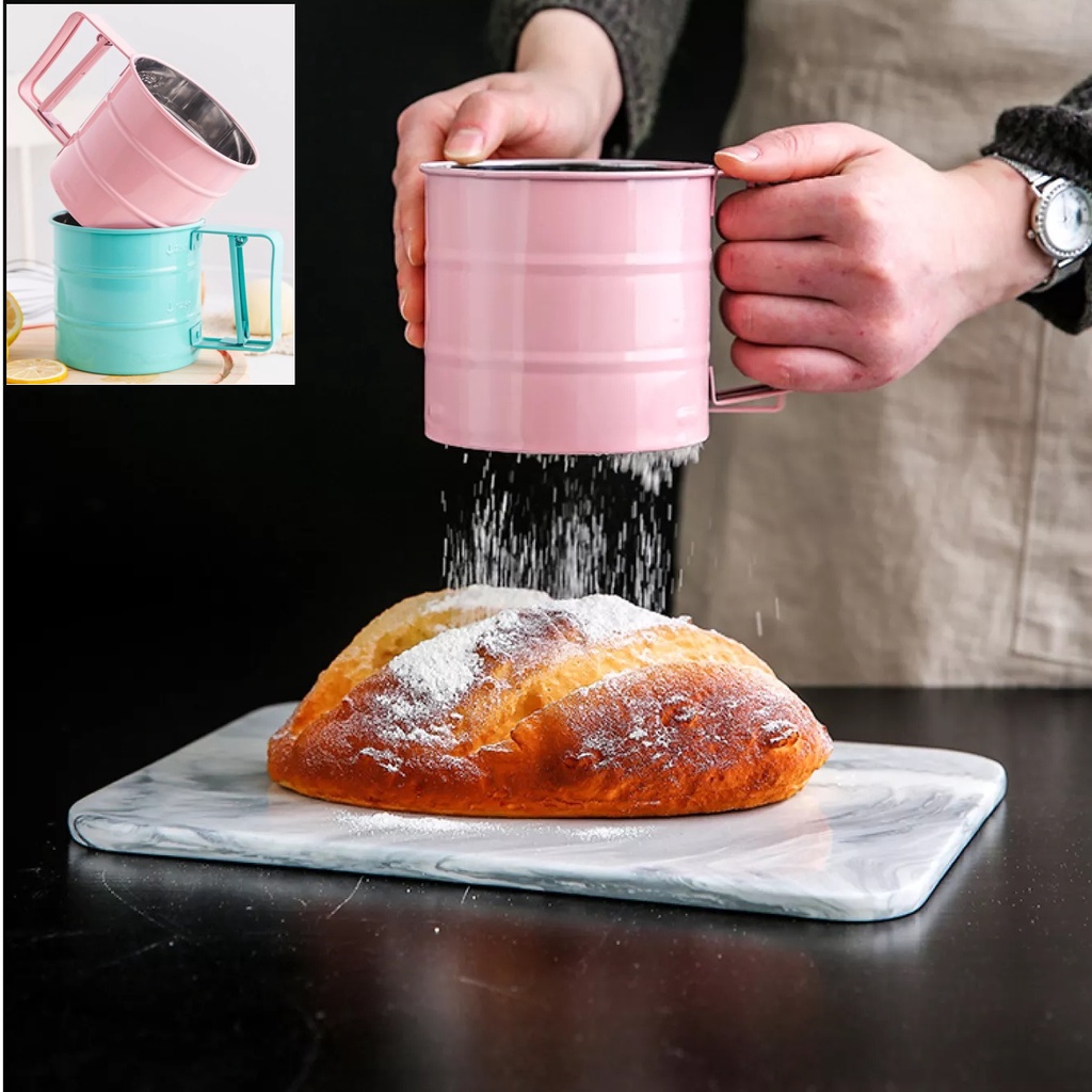 Ca RÂY BỘT, Máy RẮC CA CAO INOX bán TỰ ĐỘNG, LƯỚI KHÍT, đều bột- Bí Quyết với dụng cụ làm bánh chuyên dụng