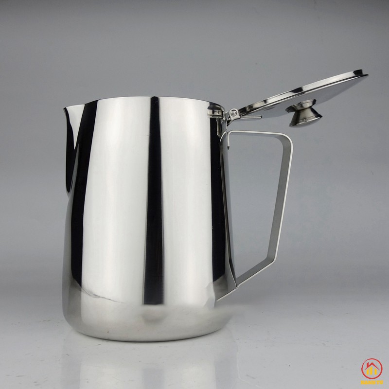- Ca có nắp khiên cho sữa được bảo toàn nhiệt độ và sự tinh khiết, mang lại hiệu quả rõ rệt trong việc decor art barista cũng như chất lượng thành phẩm.