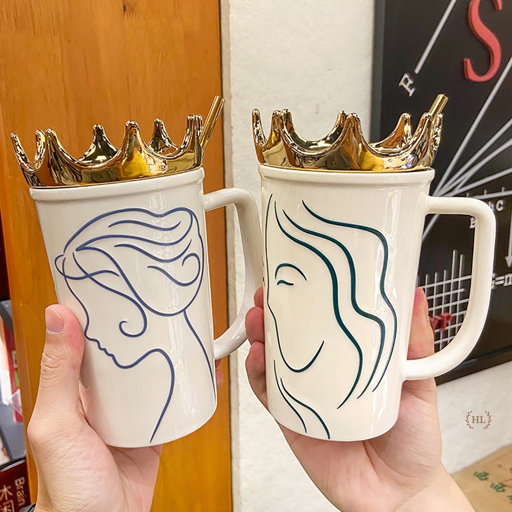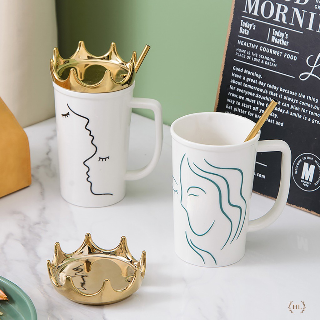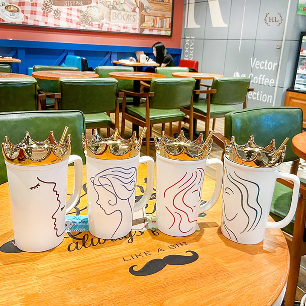 Ca sứ kèm ống hút inox vàng kim | Cốc sứ Hot Trend 2022 | Ca sứ có nắm đậy kèm ống hút Size To nắp Queen vương miệngChất liệu: Sứ Xương chống bám bẩn họa tiết nữa hoàng