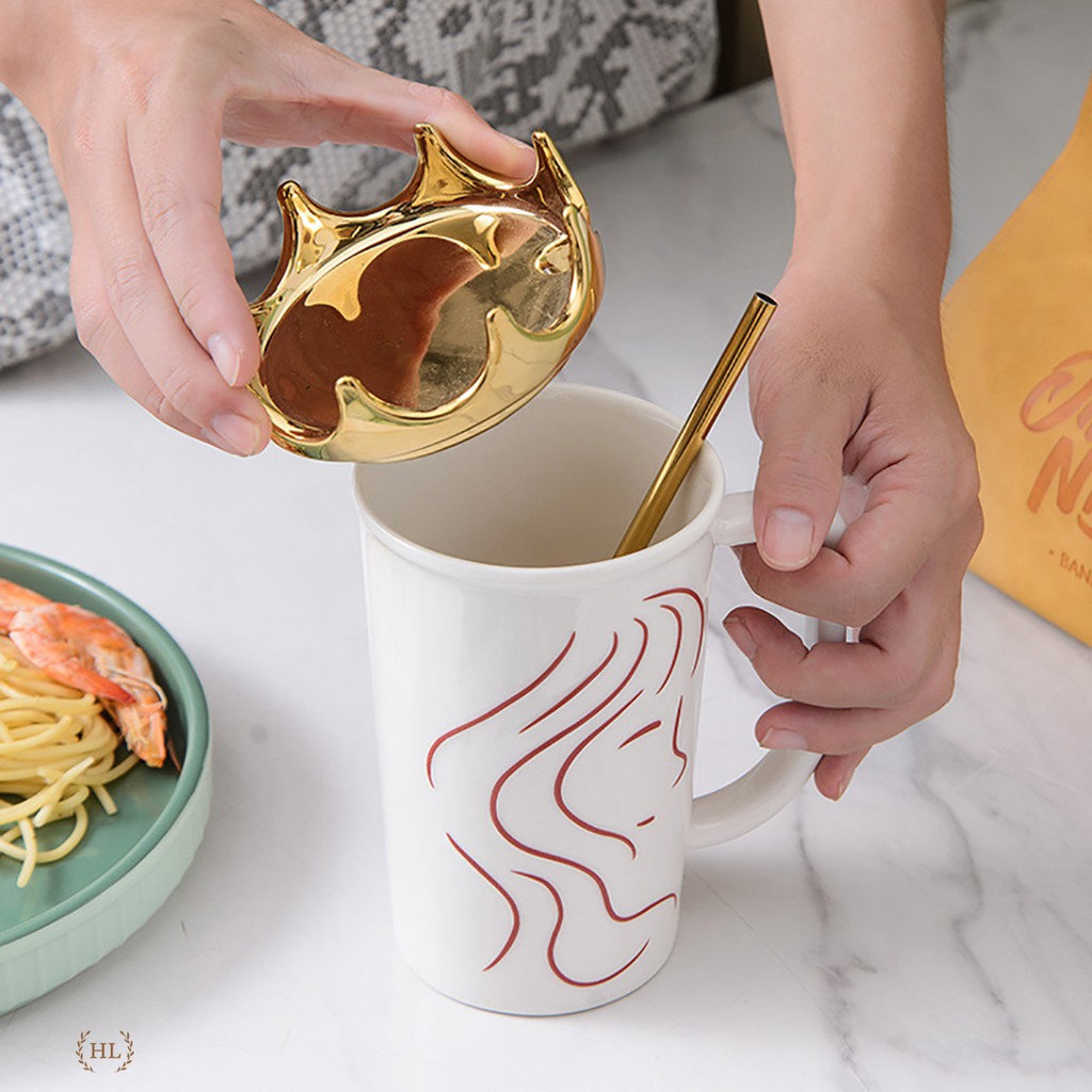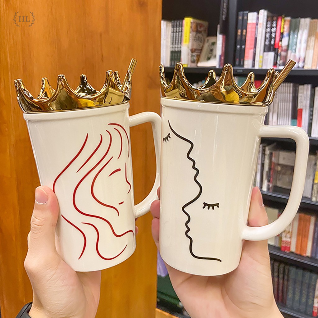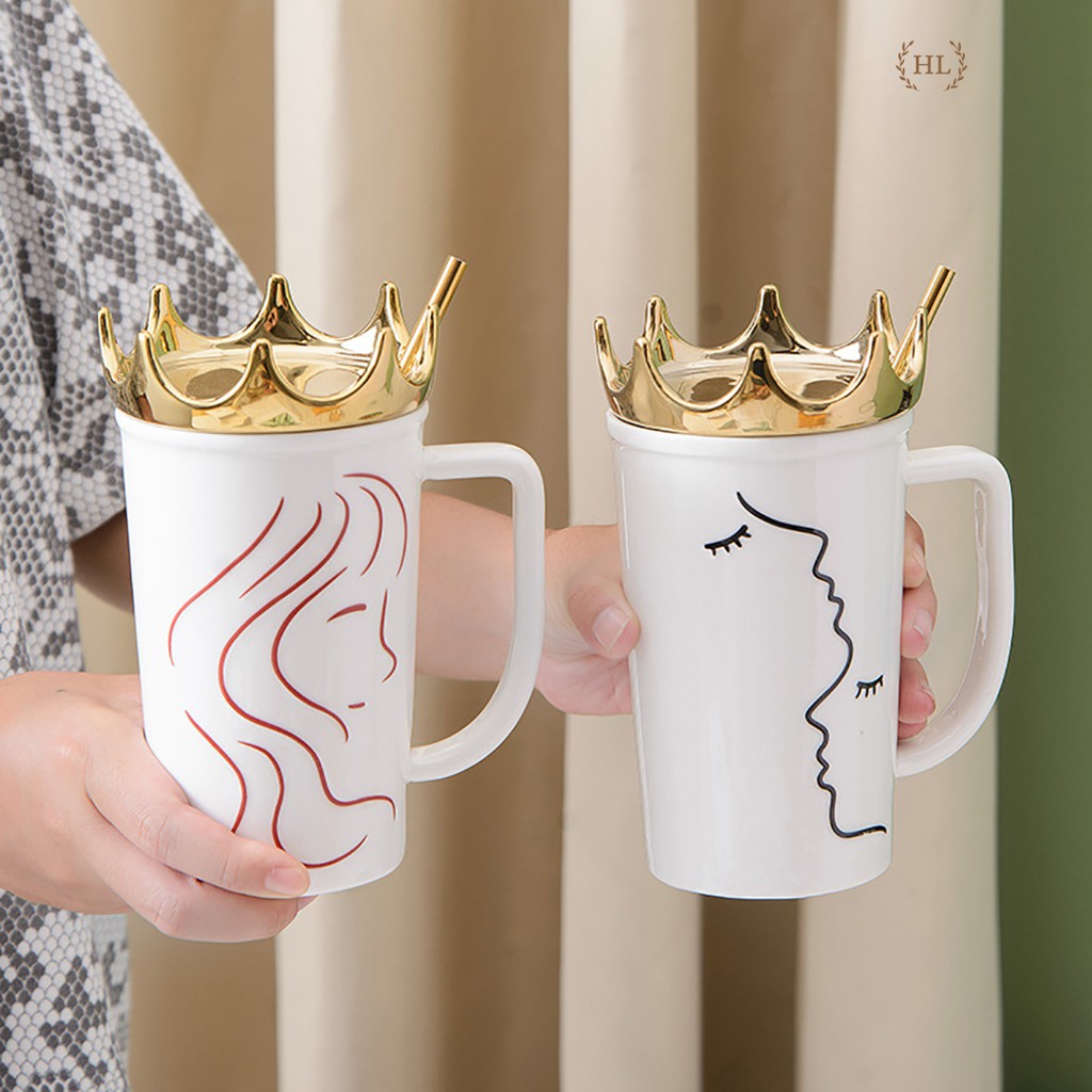 Ca sứ kèm ống hút inox vàng kim | Cốc sứ Hot Trend 2022 | Ca sứ có nắm đậy kèm ống hút Size To nắp Queen vương miệngChất liệu: Sứ Xương chống bám bẩn họa tiết nữa hoàng