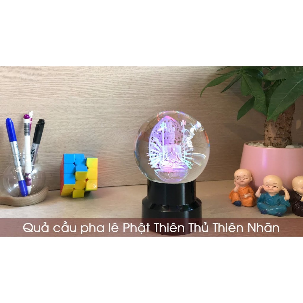 Giới thiệu Quả cầu phong thủy pha lê 3D - Bồ Tát Thiên Thủ Thiên Nhãn - Tặng kèm đế gỗ