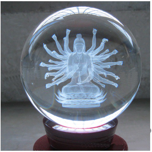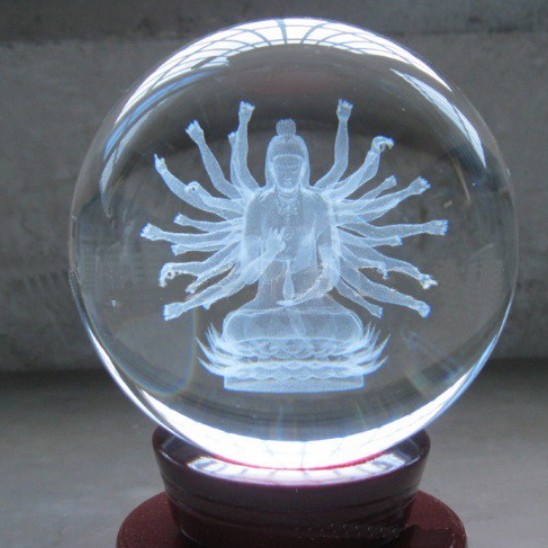 Quả cầu phong thủy pha lê 3D - Bồ Tát Thiên Thủ Thiên Nhãn - Tặng kèm đế gỗ