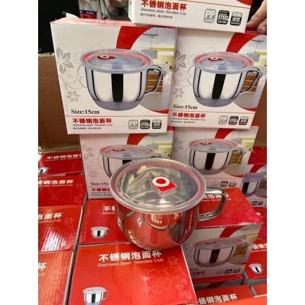 CA ÚP MÌ-ĂN BỘT CHÁO INOX sai to 15cmTên sản phẩm: Ca mỳ inox,có quai, nắp hút chân không