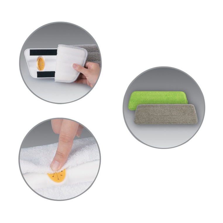 * Chất liệu: Thanh lau bằng thép không gỉ và nhựa ABS, vải lau bằng sợi Microfiber