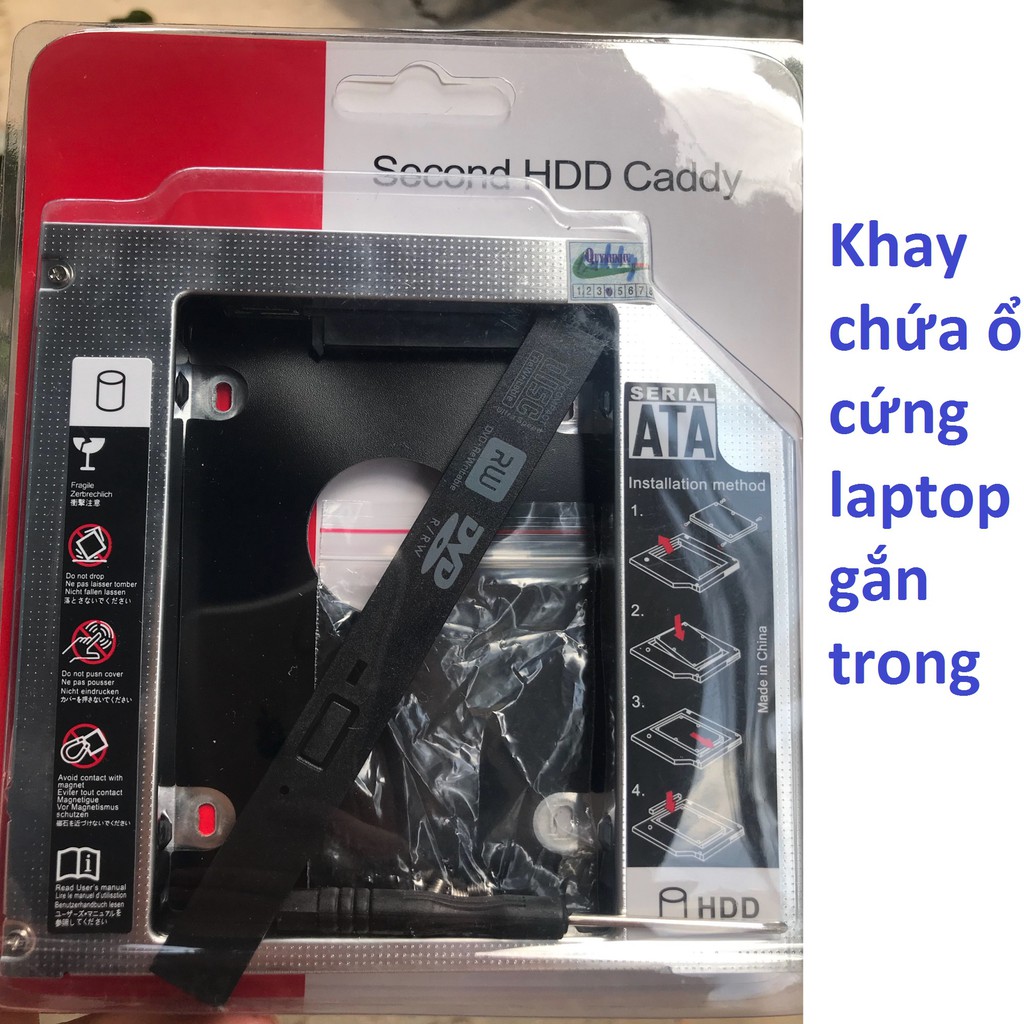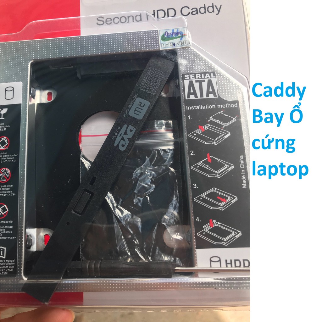 Caddy Bay 9.5 mm (Tặng Trục Vít Và Vỏ Chắn Khay)Bộ Tạo ổ cứng thứ hai cho laptop.