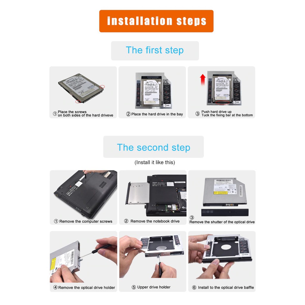 ⚡CADDY BAY - Khay gắn thêm ổ cứng vào khe CD 9.5mm cho máy tính xách tay thuận tiện khi gắn thêm một SSD/HDD 2.5” cho máy tính xách tay của bạn. Dễ dàng lắp đặt và thay thế (có sẵn 1 vít nhỏ cạnh sườn), tương thích với mọi dòng laptop. Đơn giản, nhanh chóng và ổn định so với dùng vỏ hộp ổ cứng cắm ngoài USB .