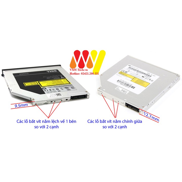 - Caddy Bay Laptop thường có 2 loại: loại dày 12.7 mm và loại mỏng 9.5 mm.