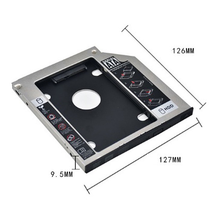 Chất liệu nhôm màu sáng, cứng cáp và tản nhiệt tốtDùng để lắp ổ HDD 2.5" vào vị trí ổ DVD sau khi nâng cấp SSD